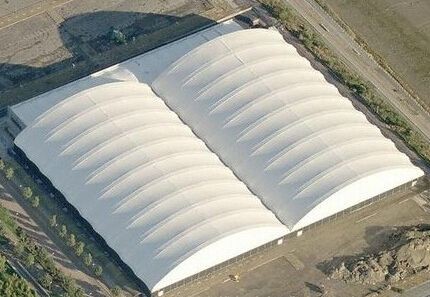 建筑膜材是氣膜結(jié)構(gòu)工程中所使用的主要材料,也是重要的組成部分之一。它是由高強(qiáng)度的織物基材和聚合物涂層構(gòu)成的復(fù)合材料,有些膜材還包括面層。基材決定膜材的膜結(jié)構(gòu)力學(xué)特性,一般選用玻璃纖維或聚酯纖維;涂層對(duì)基材起保護(hù)作用,并形成膜結(jié)構(gòu)膜材料的自潔、密封性能;面層保護(hù)基材,并改善表面性能。